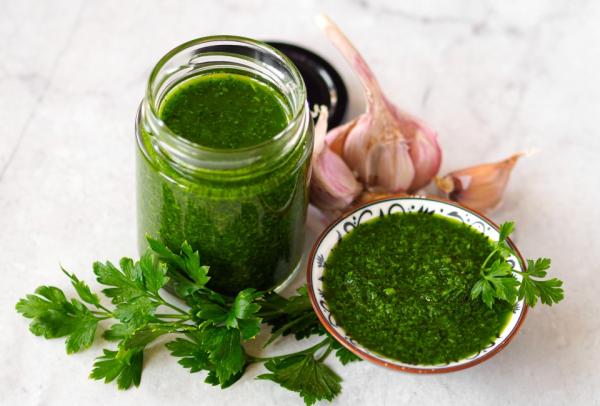 Гребешок 200+гр, запекается на створке с соусом сливочный песто под сыром сулугуни, подается с хлебцем;